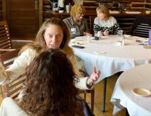 The afternoon included sessions on strategic thinking, decision making, and delegation, as well as the components of building trust in a relationship. Following that, the final session, on conflict and repair, incorporated concepts from the Embodiment Institute. Participants discussed how conflict creates the opportunity to clarify boundaries, deepen relationships, and open potential for repair. As opposed to being thought of as “bad,” conflict can be one of the primary ways to change, and to change situations.