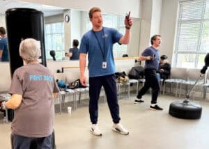“We honored the group during Parkinson’s Awareness Month this April,” said trainer D’Anna. “It was a feel-good moment. Everyone shared what they loved about class. The top answer? The people.”